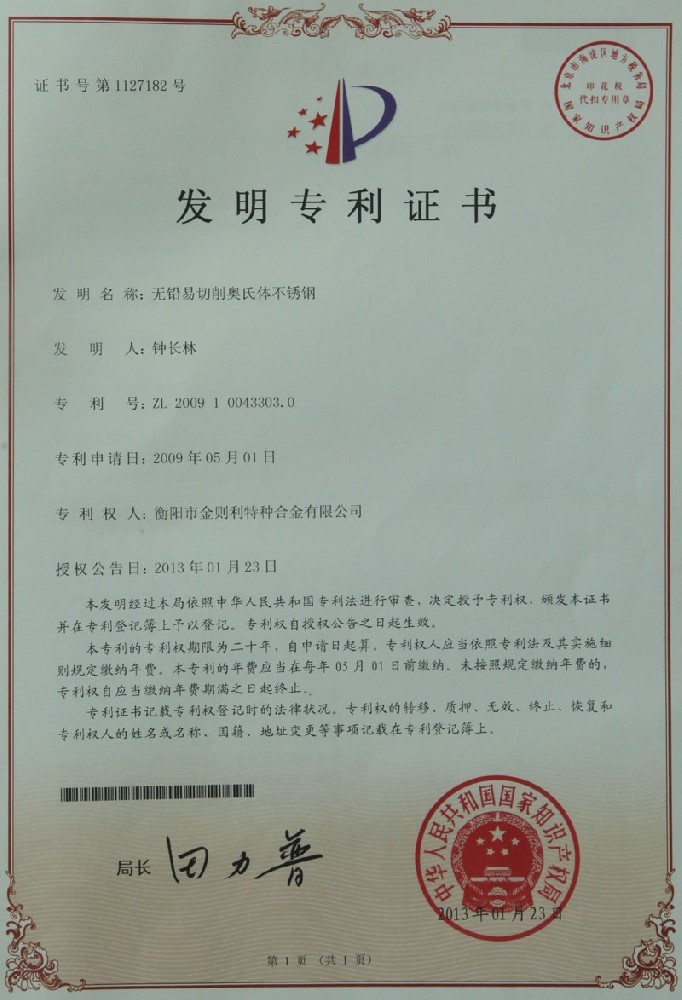 • 發(fā)明專利證書